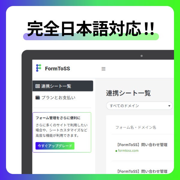 でご利用いただけます。まずはFormToSSの便利さをお試しください。