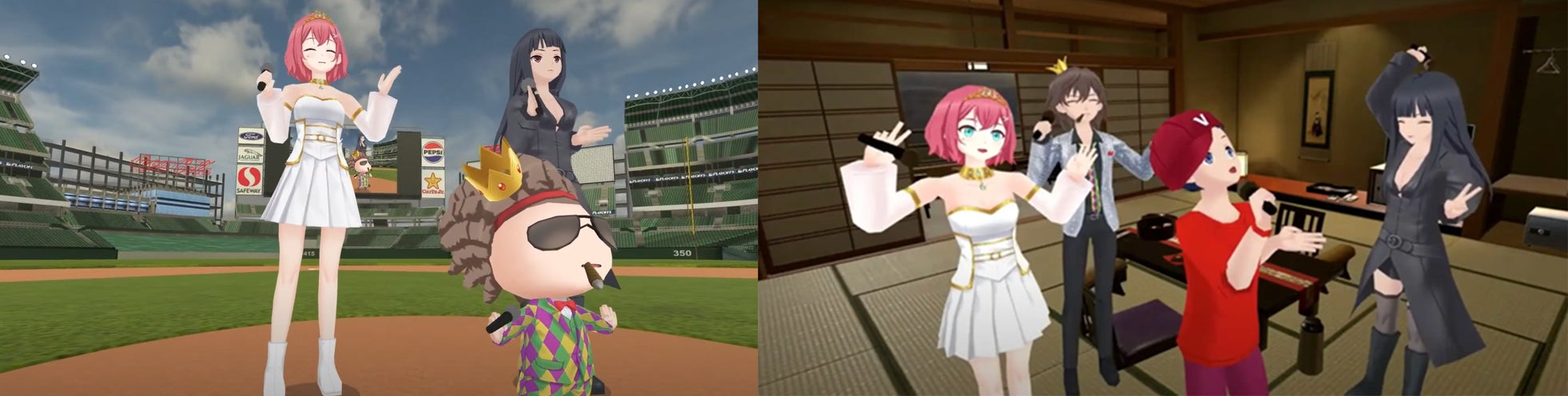 を通して、誰もが数分で気軽にVTuberデビューを果たせる、次世代のエンターテインメントプラットフォームです。Meta Questの強力なVR技術と、当社独自開発の没入型カラオケシステムを融合させることで、従来のカラオケの概念を大きく覆す新たな体験を提供します。誰もが一流ミュージシャンのように、大観衆を前にして、スタジアムやライブハウスをはじめ、実在の観光地などを舞台に、