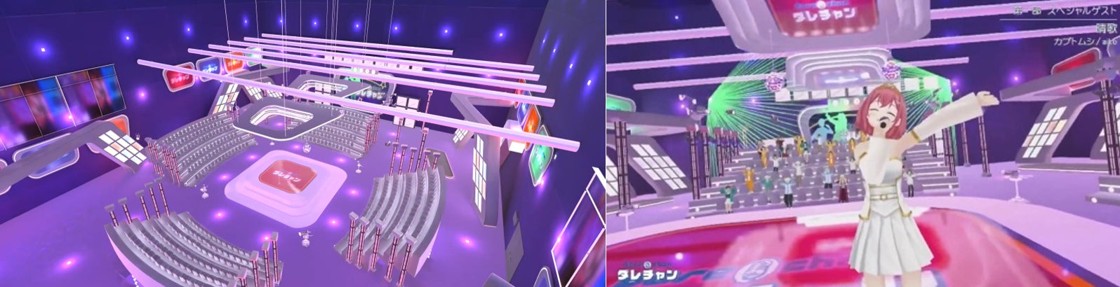 「カラオン」アプリにて視聴者ご自身もアバターになってVR空間に参加することが可能です。VR空間からの視聴は、パフォーマンスまでの近い距離感も相俟って、ライブの臨場感を体感できる特別空間です。アプリ情報などの詳細は後日発表致します。