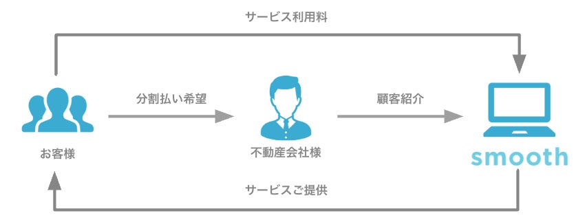 「スムーズ」は、賃貸契約時の敷金・礼金・仲介手数料などの初期費用を、クレジットカードを使わず分割払いにできるサービスです。初期費用が高いことを理由に契約をためらう顧客に対し、分割払いを提案することで、顧客の離脱を防ぎ、売上を改善することができます。また、クレジットカード払いとは異なり、決済手数料・導入費用ともに無料であるため、累計1,000店舗にて活用されています。