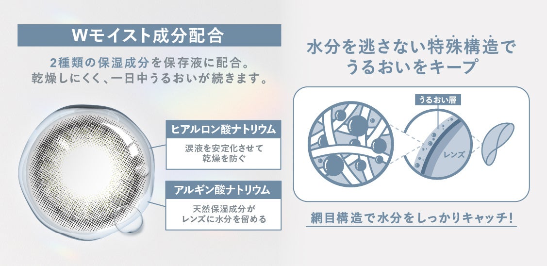 瞳に酸素を届けられる「シリコーンハイドロゲル素材」のレンズで、瞳の酸素不足を防ぐとともに、