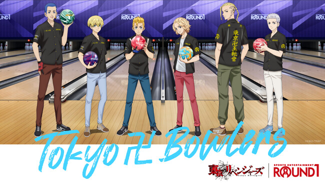 東京卍會の武道たちメンバーがROUND1でボウリングチームを結成!?お揃いのボウリングシャツで登場。オリジナルグッズやクレーンゲームの景品で展開いたします。