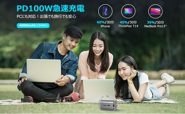 急速充電を搭載した、40000mAh大容量モバイルバッテリーは、スマートフォンを30分で0%→60%まで、Macbook Proなら1時間半でフル充電が完了します!